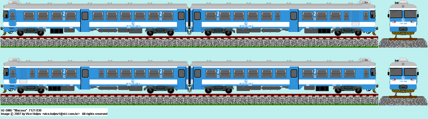 | Hž DMU 7121 022/033 Nicknamed : ''Macosa'' Drawn by: Vice Huljev <vice.huljev1@st.t-com.hr> |