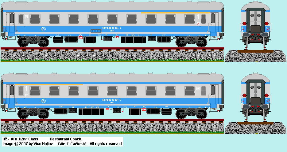 | Hž ARl -restaurant car in old classic colors. Drawn by : Filip Cackovic Based on image by : Vice Huljev <vice.huljev1@st.t-com.hr> |