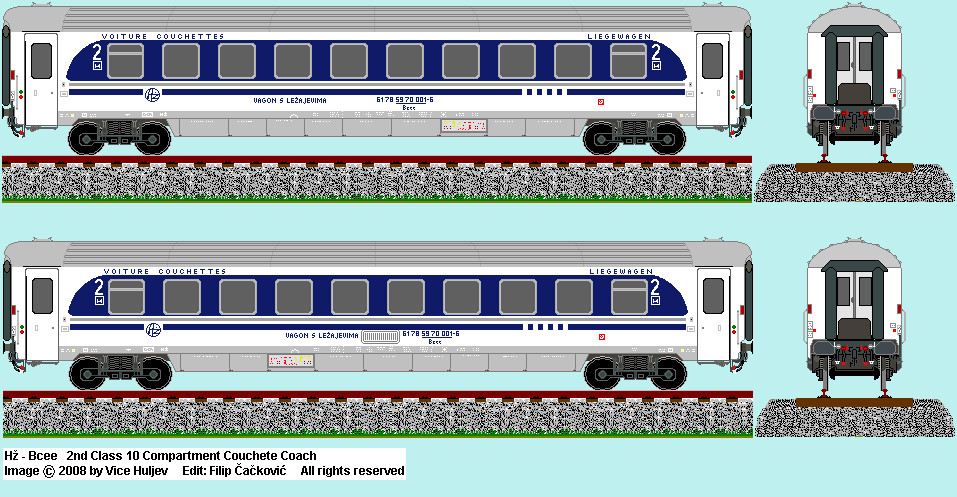 | Hž Bcl 2nd class couchetts coach in classic livery. Drawn by : Vice Huljev vice.huljev1@st.t-com.hr |