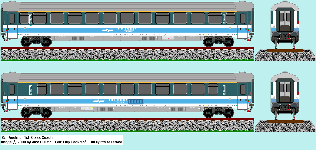 | Sž ABeelmt - 1st class coach (26.4 m) in new colors. Drawn by : Filip Cackovic.(f.cackovic@gmail.com) |