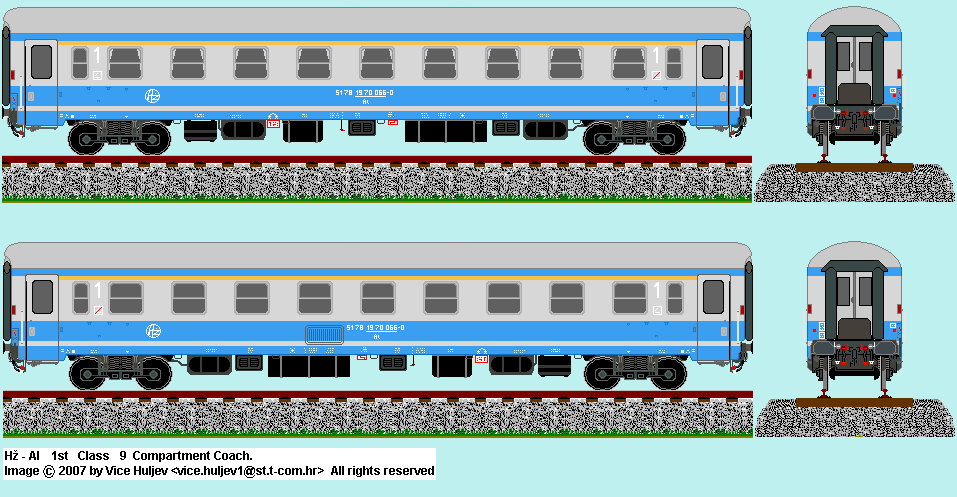 | HZ Al 1st class 9 comparment coach in old classic livery. Drawn by : Filip Cackovic Based on image by : Vice Huljev <vice.huljev1@st.t-com.hr> |