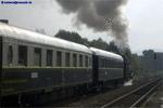 WTB (Wutachtalbahn) 86 333, leaving Lauchringen with a special train "Orient-Express". At the rear end of the 9-car train, two V100 from NESA are pushing (15.09.2002)