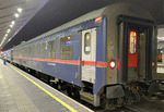 | ÖBB couchette car 61 81 59-90 005-8, coach 814 of EN 234 "Allegro Tosca" Roma Termini - Wien Meidling. Note the uneven roof, which can often be found in cars of this type. Leoben Hbf, 2010-07-04. |