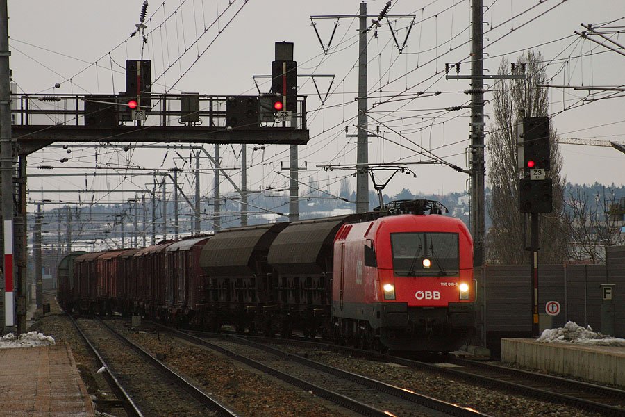 1116 010 was passing station Haidestrasse with a freight train to Breclav on 11th March 2005.