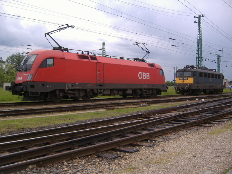MAV Hegyeshalom: ÖBB 1116 013-2 "Taurus" with both collectors down, since the loco had to wait long hours.