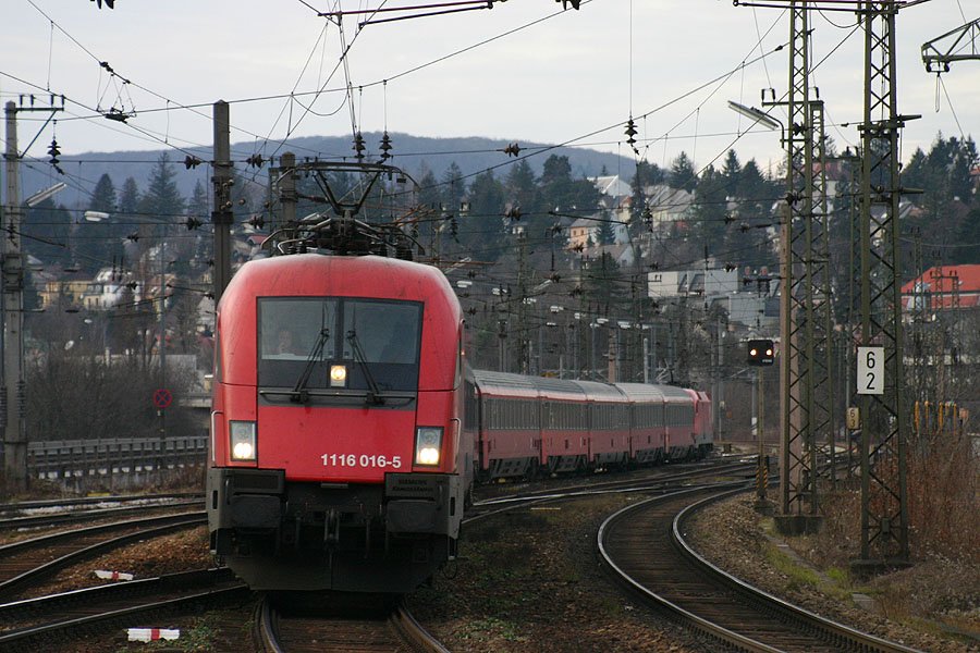 1116 015 passing Tullnerbach-Pressbaum with EC 25, 12 Dec 2004