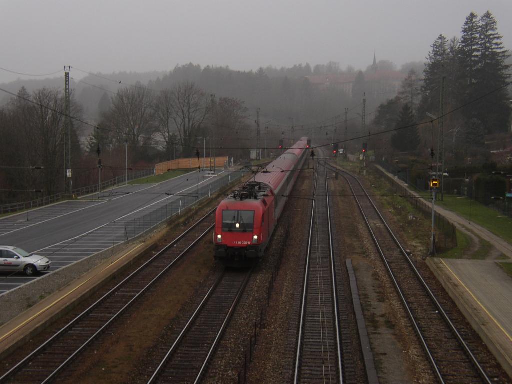 1116 025 passing foggy Tullnerbach-Pressbaum with ÓEC train 561, 12 Dec 2004