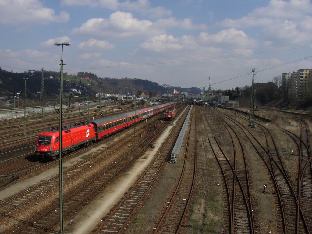 1116 025 at Wien Hütteldorf with EC 25, 28 Mar 2004