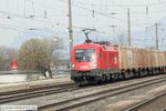 ÖBB - 1116032-2 Lok 1116 032-2 mit einem Güterzug bei der Fahrt durch den Bahnhof Brixlegg, aufgenommen am 31. März 2011.