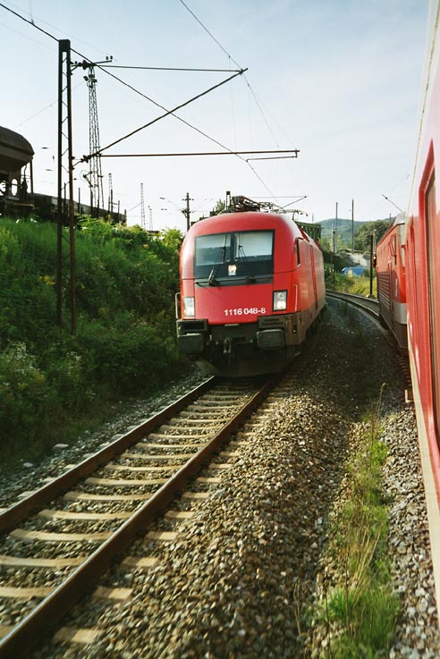 1116.048 bei Ausfahrt aus Salzburg Hbf am 4.9.02. 1116.048 departing Salzburg Central on 4/9/02. Photo: David Seemayer (david.see@gmx.at) |