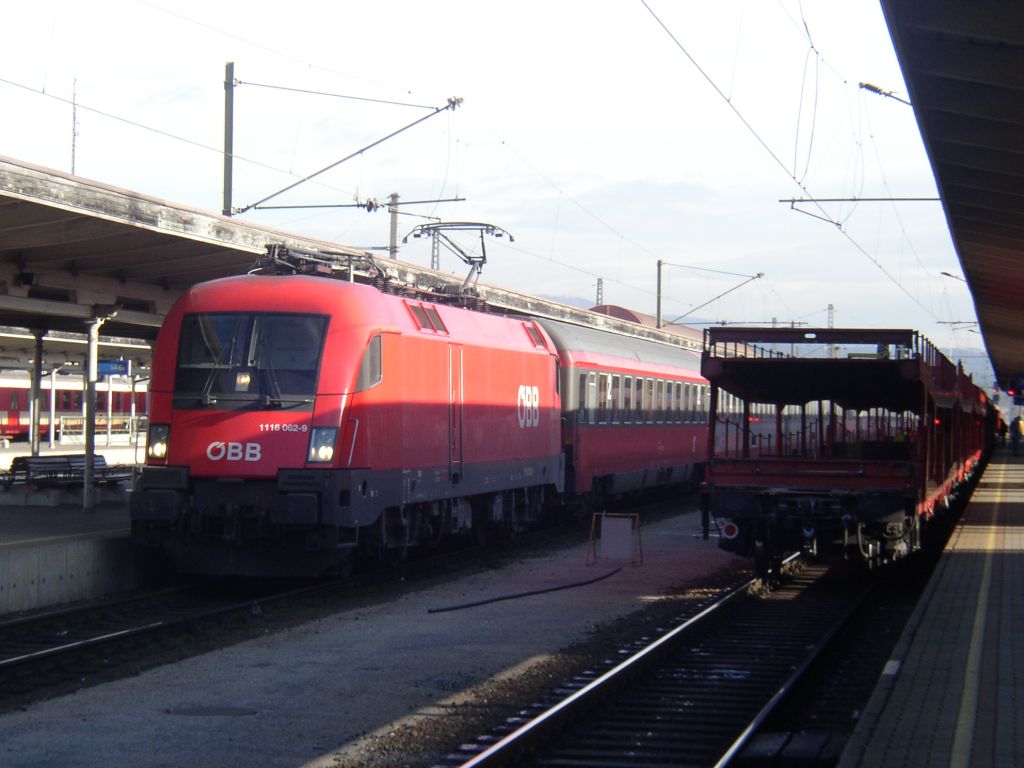 1116 062 at Villach Hbf with EC 112, 23 Dec 2004