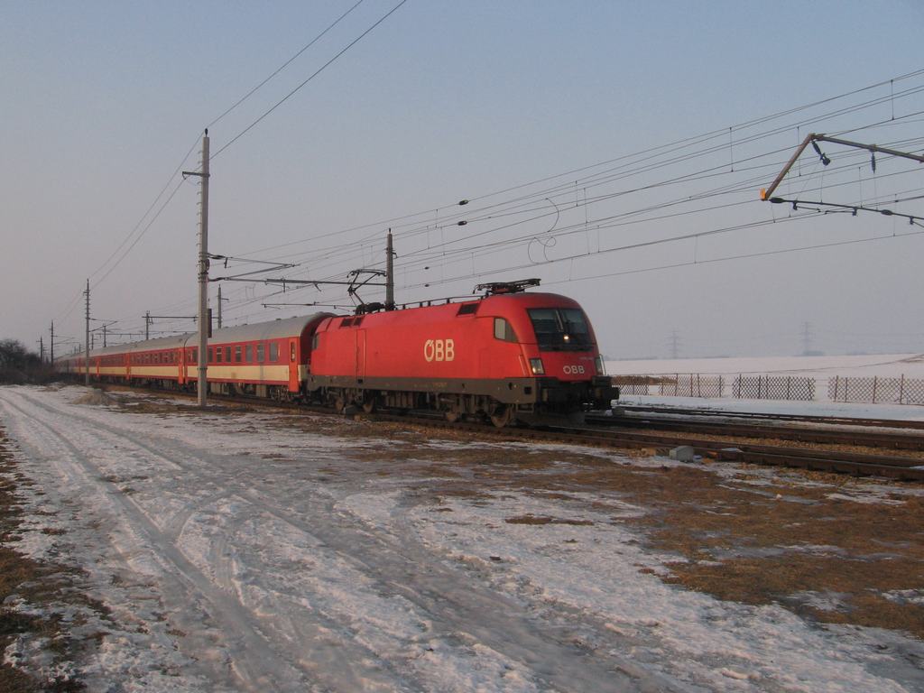 1116 218 is passing Gramatneusiedl with IC 403, Jan 20th 2006