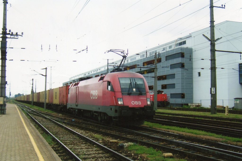 ÖBB 1116 210 mit Containerzug in Wien Hutteldorf am 27 Mai 2008.