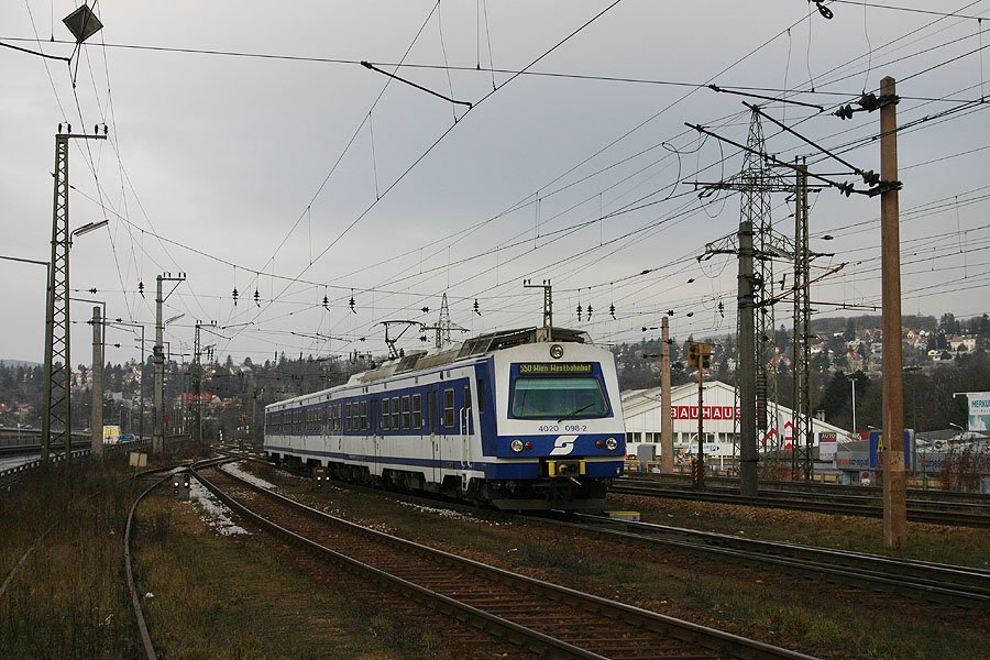 Emu 4020 098 was arriving at station Wien Hütteldorf on the way to Wien Westbahnhof on 15th Jan 2005.