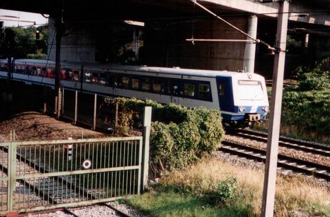 An suburban train to Vienna south/east station passes the main workshop Vienna Simmering. August 9th 2002 Photo: Ulf bundesbahn@aon.at |
