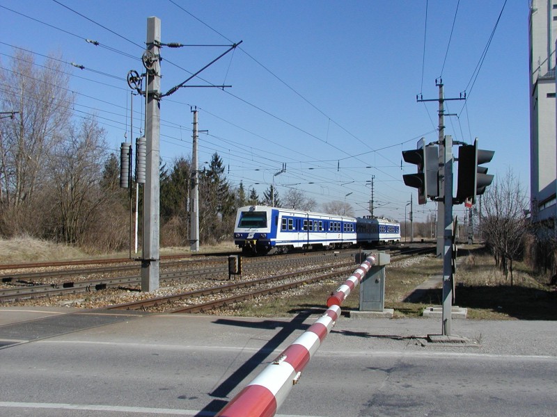 ÖBB Strecke Jedlersdorf-Korneuburg Kreuzung mit einer Schnellbahngarnitur 4020. Photo v. Bernhard Wehinger |