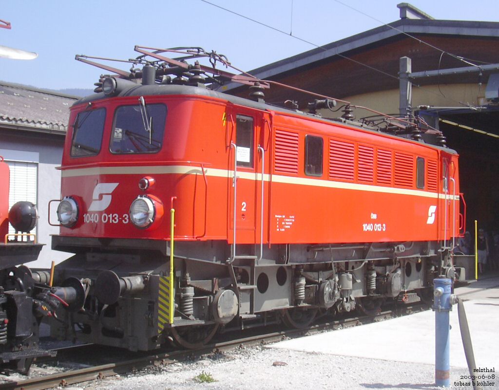 Dampflokfest (Steam Engine Festival) Selzthal: 1040 013, a nostlagic loco, is parked in front of TS Selzthal. 06/07/2003