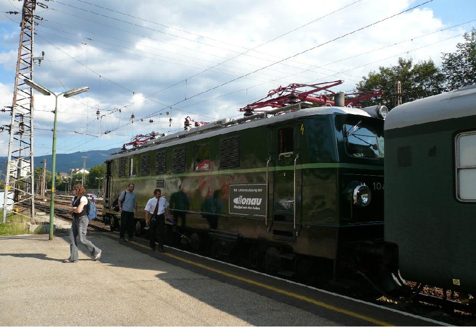 1041 015, which was bought by 1.ÖSEK (First Austrian Tramway and Railway Club) is passing station Meidling on her way to Strasshof on Sept 10th 2004.