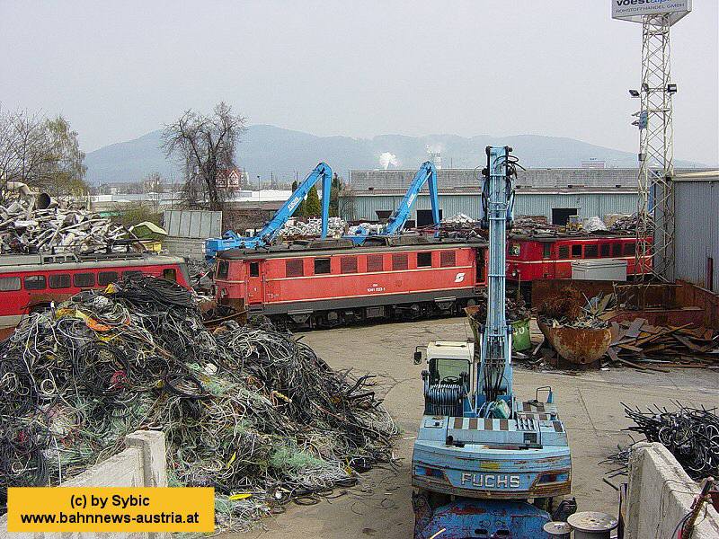 The end of a long lifetime - 1041 023 spending her last last on the scrapyard in Linz on Apr 13th 2003.