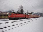 1044 099 is leaving Feldkirchen/Kärnten railway station with R 4313, 23 Feb 2005