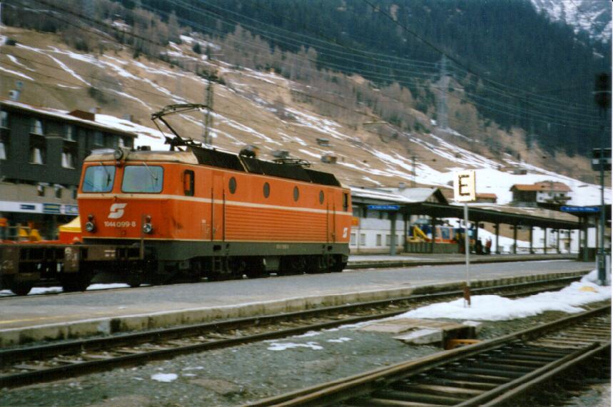 ÖBB 1044.099-8 entering the station of Sankt Anton am Arlberg, February 24th 1998