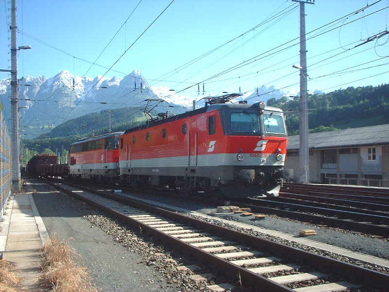 ÖBB 1044 026 + 2043 013 with goods train at Bischofshofen, 24.05.2003