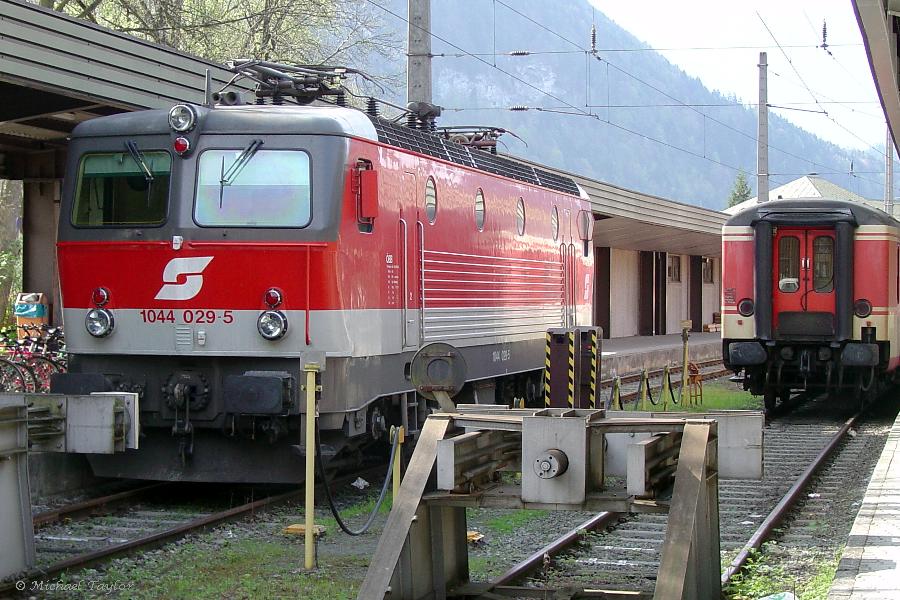 1044 029-5 in one of the southbound passenger bay platforms at Kufstein on Tuesday April 27th, 2004.