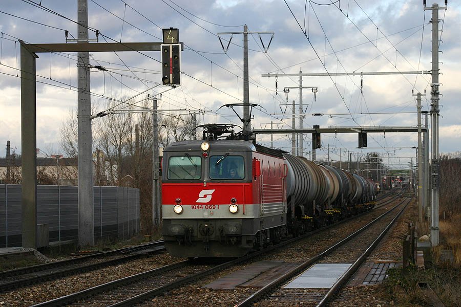1044 068 was passing Wien Hütteldorf with ROLA freight train 41348 to Wels on 2nd Oct 2005.