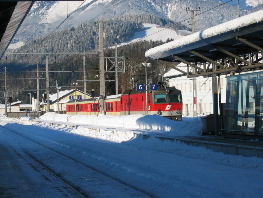 ÖBB 1044-204 mit Regionalzug von Radstadt in Bischofshofen Photo v. Michael Katai, 5.2.2005 |