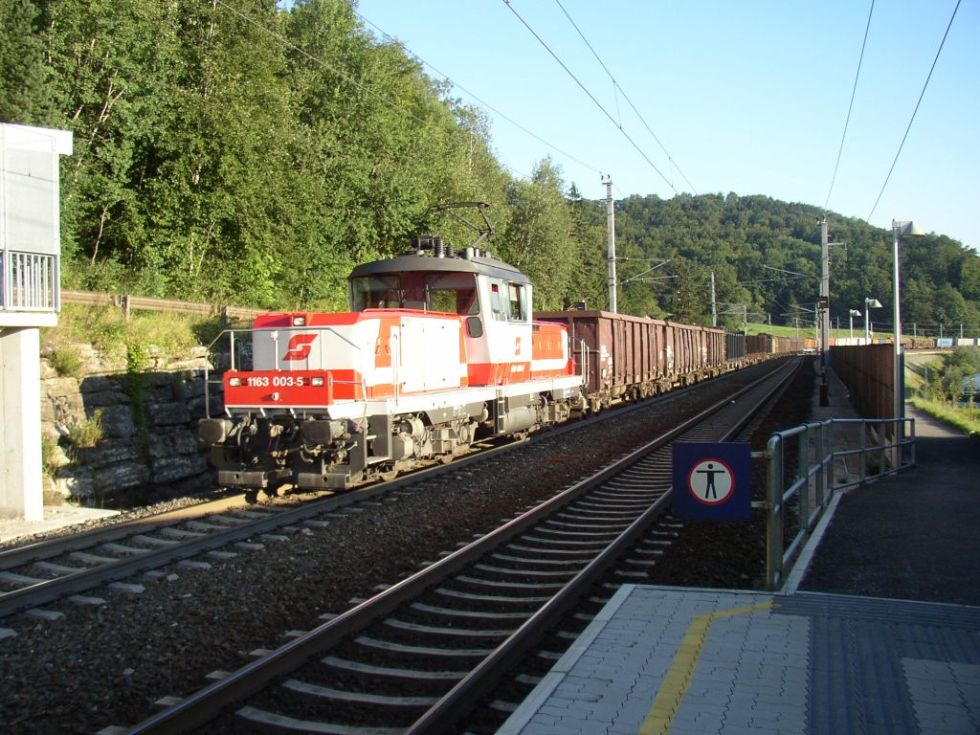 1163 003 passing Salzburg Maria Plain with a freight train, 2 Sep 2004