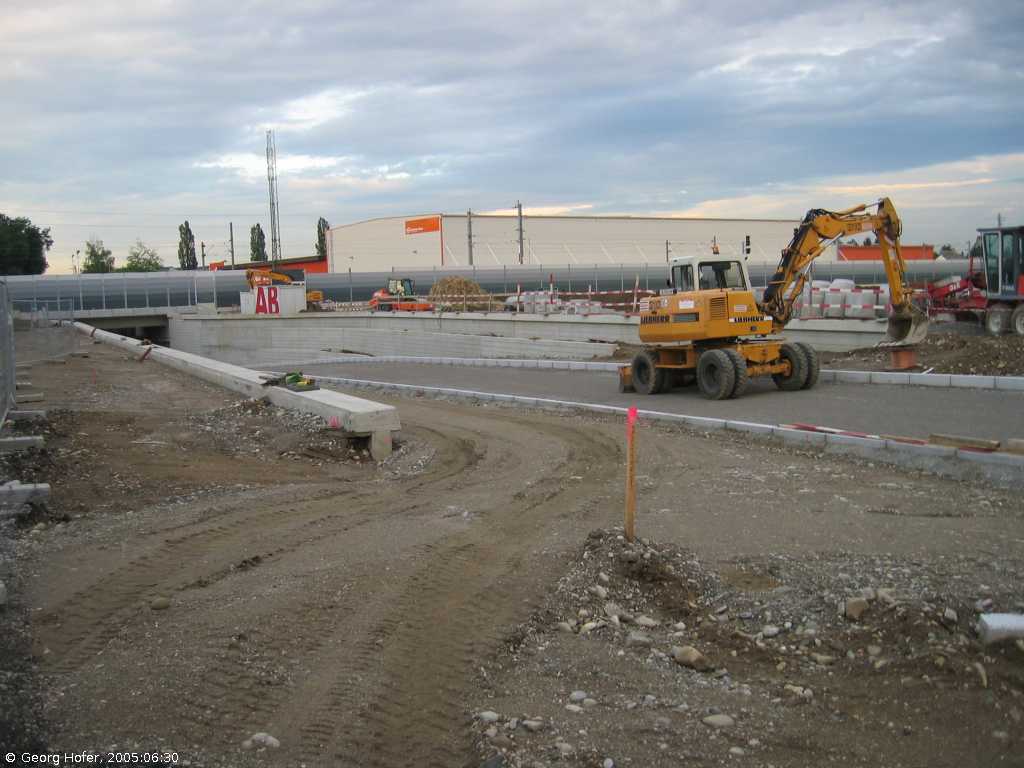 The new track is already in use, while the old track has been closed and will be reconstructed. Photo taken at the planned new stop Feldkirchen.
