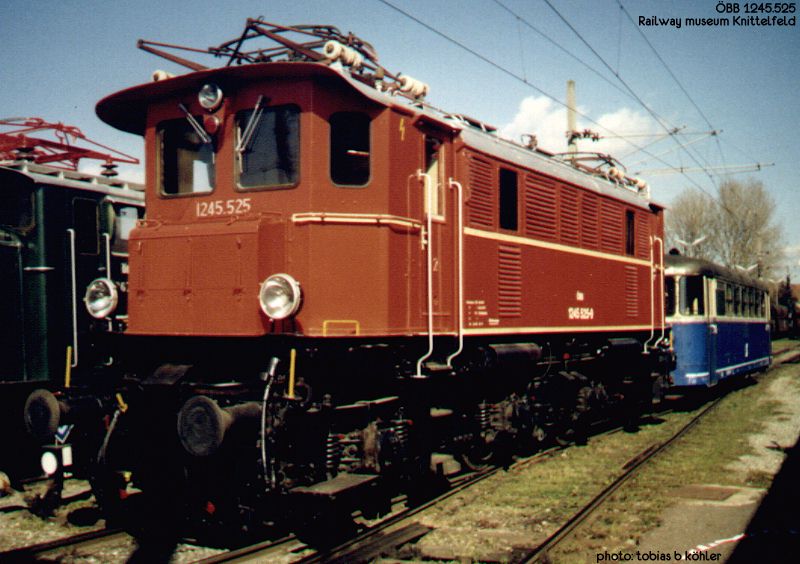 Railway museum Knittelfeld: 1245 525 in orange livery. 05/31/2003