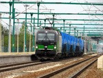 A private electric locomotive SIEMENS Vectron with number 193 763 at railway station Pazardjik with freight train. This machine is part of European locomotive leasing and now is working for private operator RCC ("Rail Cargo Carrier") A video movie about crossing the train through railway station Pazardjik , you can see on this adress: