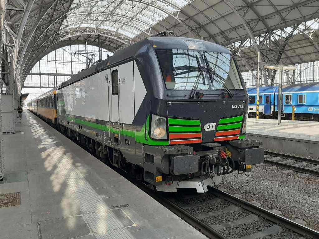 ELL 193 743 bei der Einfahrt nach Praha hl.n. mit Regio Jet. August 2019.