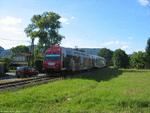 Double-deck trainset of the GKE in new colours, seen from another perspective.