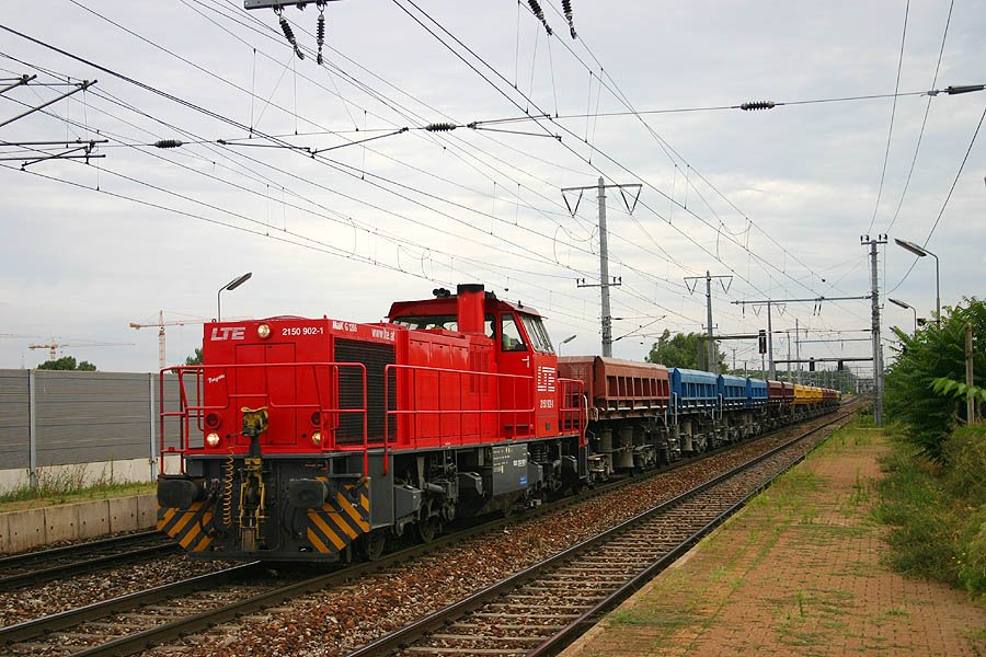 2150 902 of the LTE was passing station Wien-Haidestrasse with a freight train for excavated earth on 1st Aug 2006.