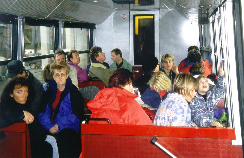 Inside a Salamander unit there isn't plenty of space especially when you want to go on an alpine tour with big rucksack. The cars are equipped with 4+6 seats with corridor which is a quite uncomfortable affair on a meter gauge railway.