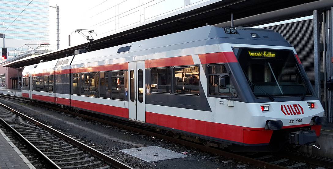 Railcar 9135 90 22 158-0 of "Linzer Lokalbahn (LILO)" at railway station Linz Hauptbahnhof.
