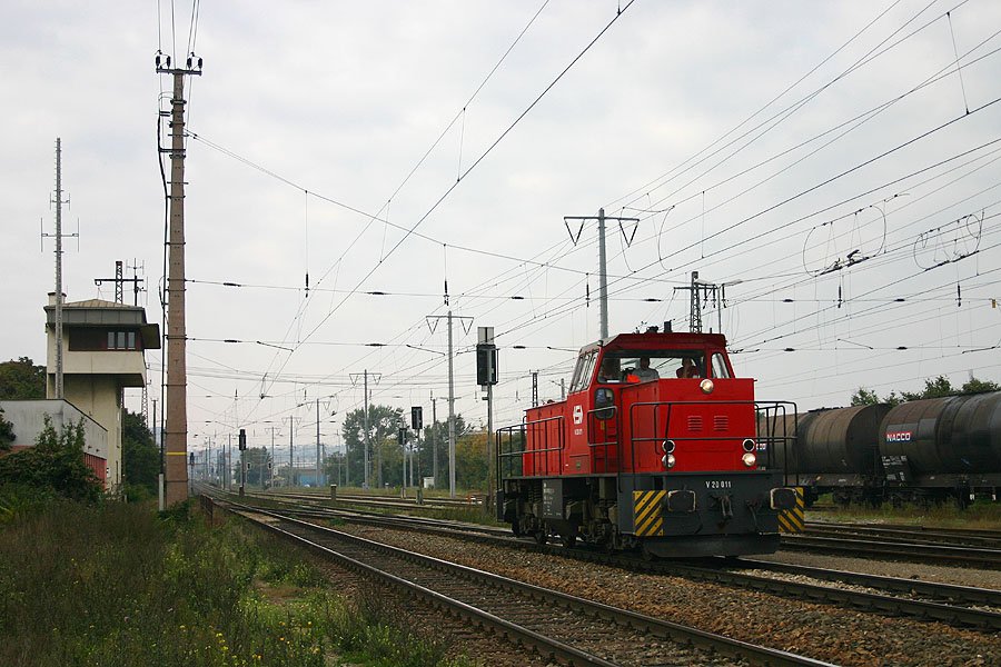 V20 011 of Stern & Hafferl (St&H) was passing Wien Erdbergerlände on the way to Vorchdorf on 9th Oct 2005.
