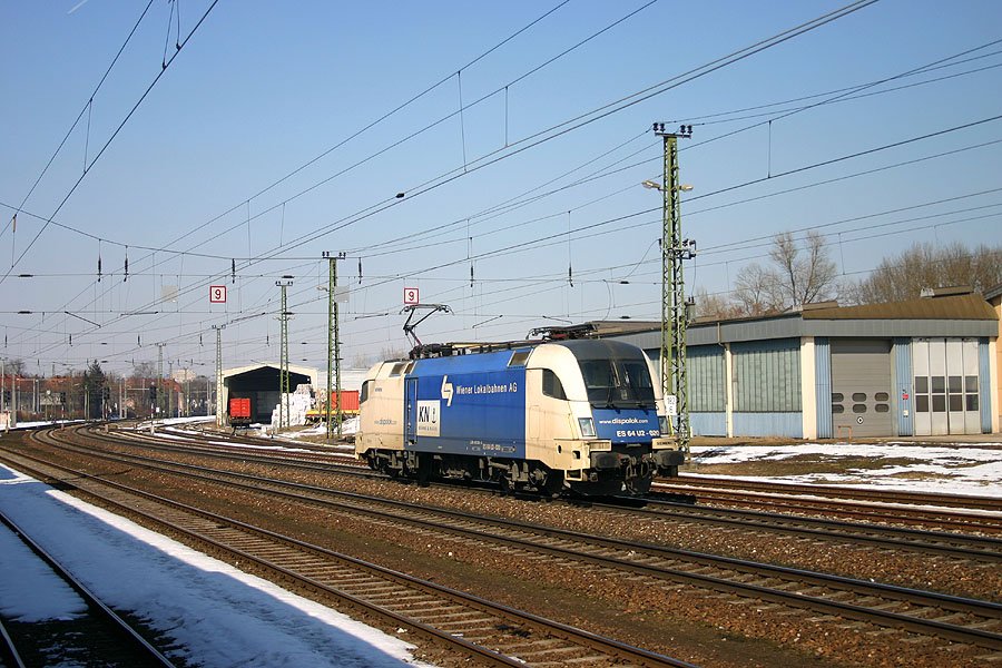 ES64U2 020 of Siemens Dispolok, now used by the Wiener Lokalbahnen AG (WLB), was passing Linz Kleinmünchen on 19th Mar 2006.