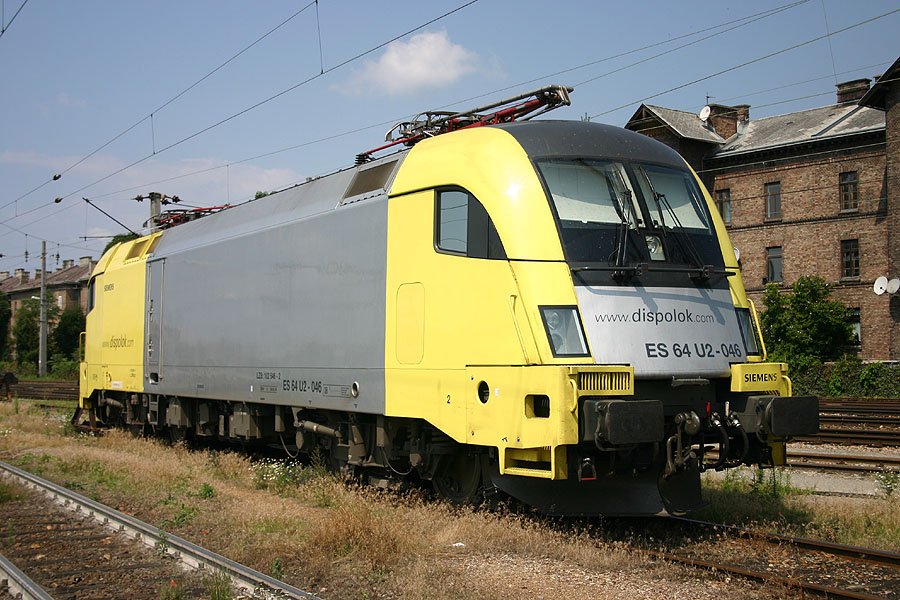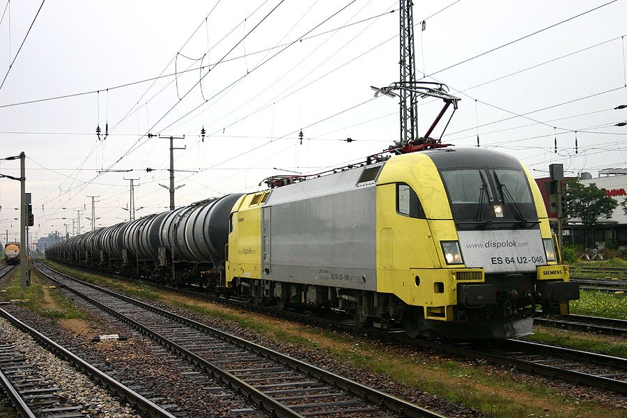 ES64U2 046 of Siemens Dispolok, now used by the Wiener Lokalbahnen AG (WLB), parked at Wien Matzleinsdorf on 16th July 2005.