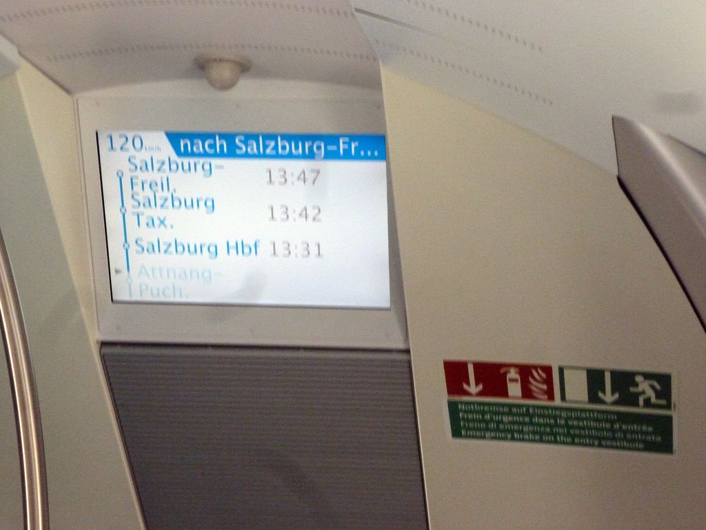 Salzburg shows up as the destination on the information displays on the