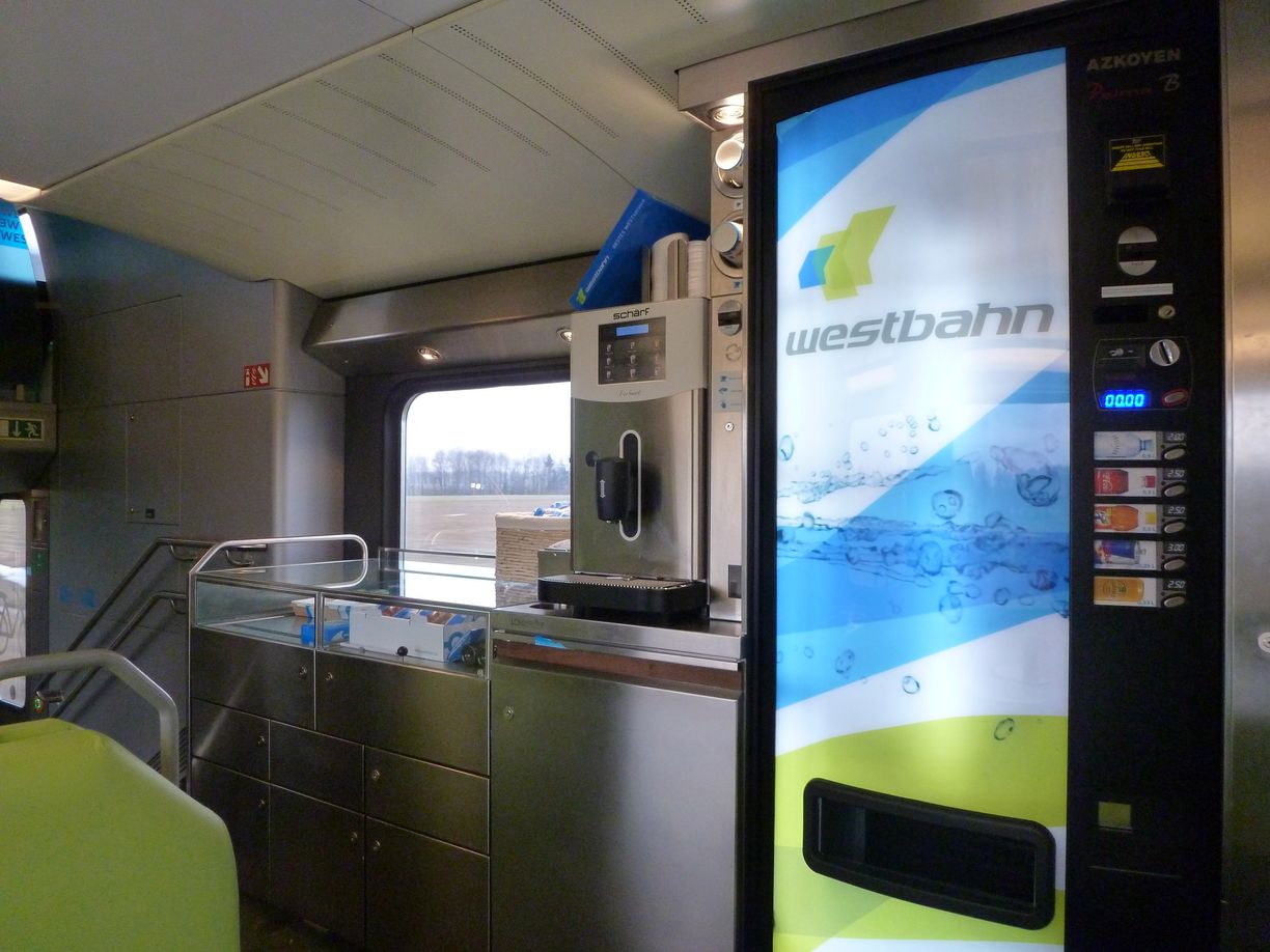 Westbahn, "Westcafé" in a middle car. Dispensers for hot and