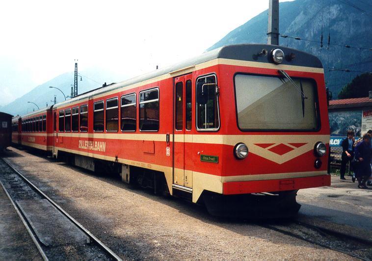 Z-Bahn Diesel Multiple Unit. Zillertalbahn DMU VT4 "Franz Prantl" a 1985 built DMU is the lead unit of train #8829 (10:22 departure) at Jenbach on Monday September 23rd, 2002. It appears that both VT3 & VT4 carry nameplates for "Franz Prantl" who was one of the Z-bahn founders.