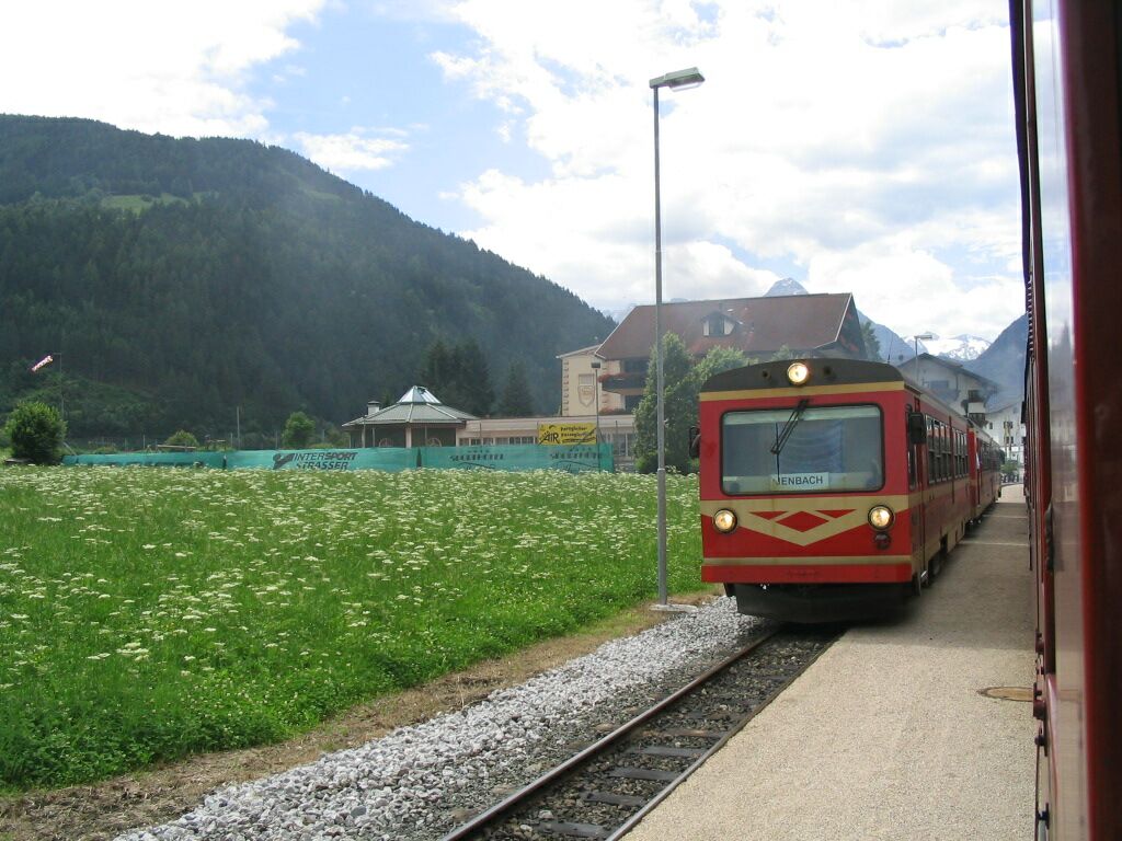 Zillertalbahn VT5 + BD4 40 + VT8 Mayrhofen 08.07.2004 Photo: Jos Straathof |