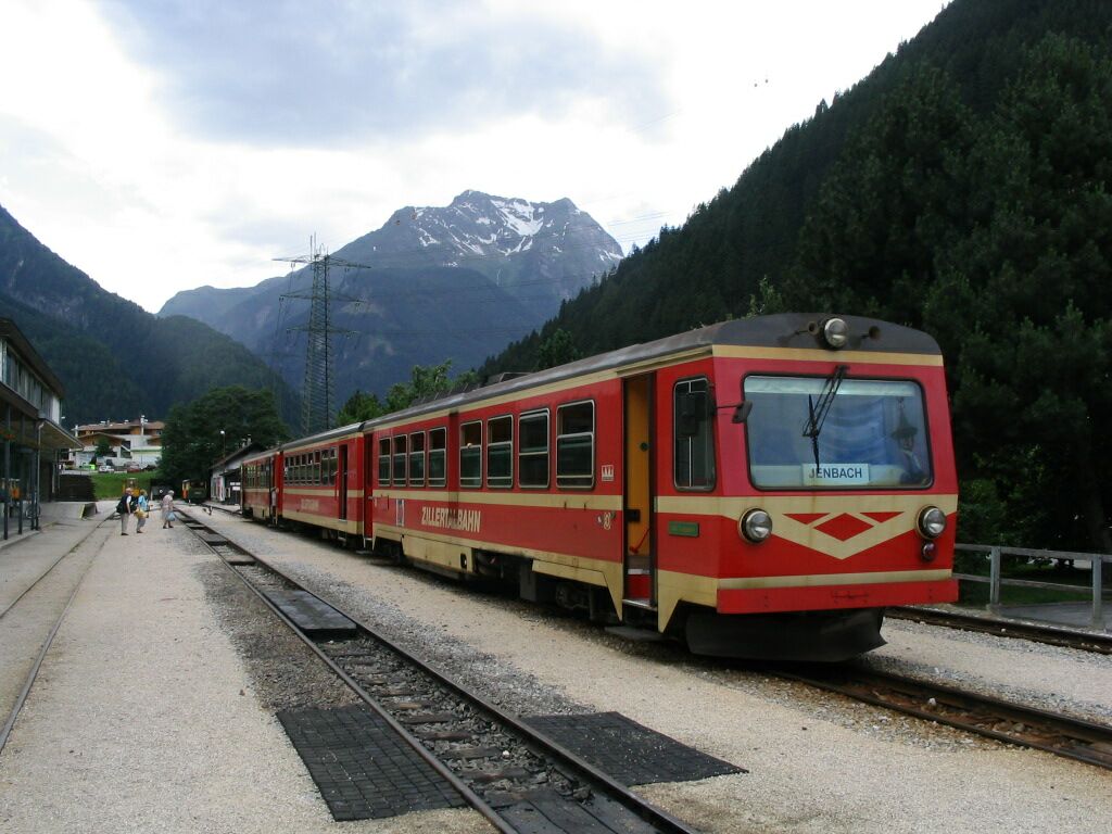 Zillertalbahn VT5 + VT8 Jenbach 11.08.2008 Photo: Jos Straathof |