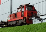 | voestalpine Moyse shunter No. 6, which always seems to stand in the same location, stored as a reserve while the newer Gmeinder shunters do most of the work. Leoben Donawitz, 2015-09-22. |