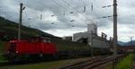 | voestalpine V1 pushes several flat cars with wire rolls over the grade crossing between the steel works and the wire works at Donawitz. 2009-04-29. |