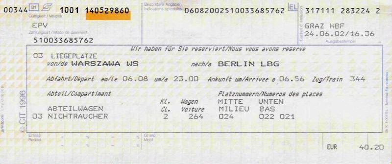 Sleeping-car reservation Irkutsk - Moskva, issued at Graz Hbf (ÖBB). However, we left the train at J