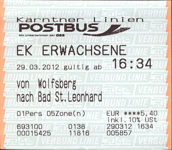 Bus ticket Wolfsberg - Bad St.Leonhard 29.3.2012 |